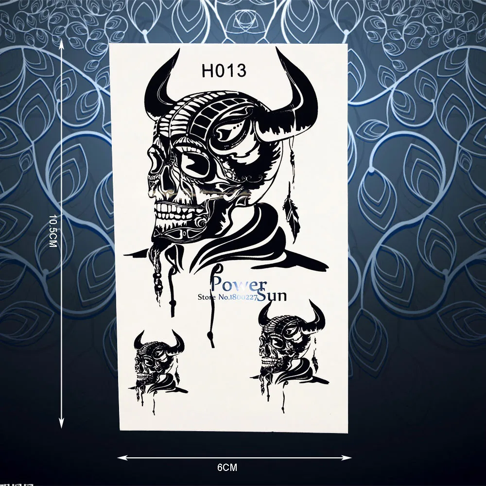 4.9 108 Video Reviews Removable Waterproof Temporary Tattoo Sticker Skull Ox Horn Tatoo For Men Women Body Art Arm Leg Black Fake Tattoo Stickers PH13 fake-body-tattoos