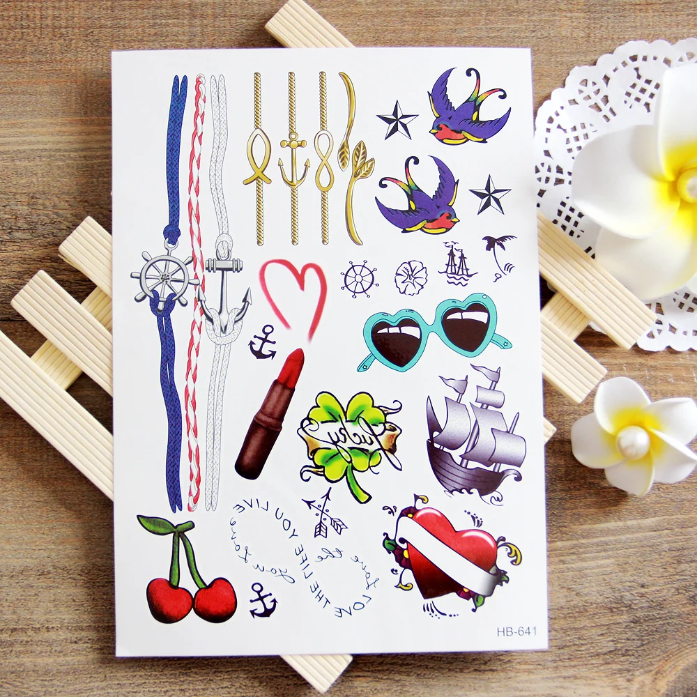 4.9 106 Video Reviews Large Waterproof Temporary Tattoo sticker on body Heart Clover navy tattoo Water Transfer fake tattoo flash tattoo for girl boy fake-body-tattoos