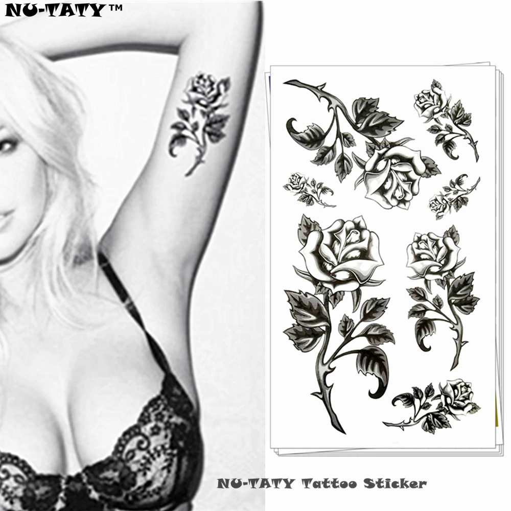Check Price Nu-TATY Black Rose Temporary Body Art Flash Tattoo Sticker 10*17cm Waterproof Henna Fake Tatoo Car Styling Wall Tattoo Sticker fake-body-tattoos This instant