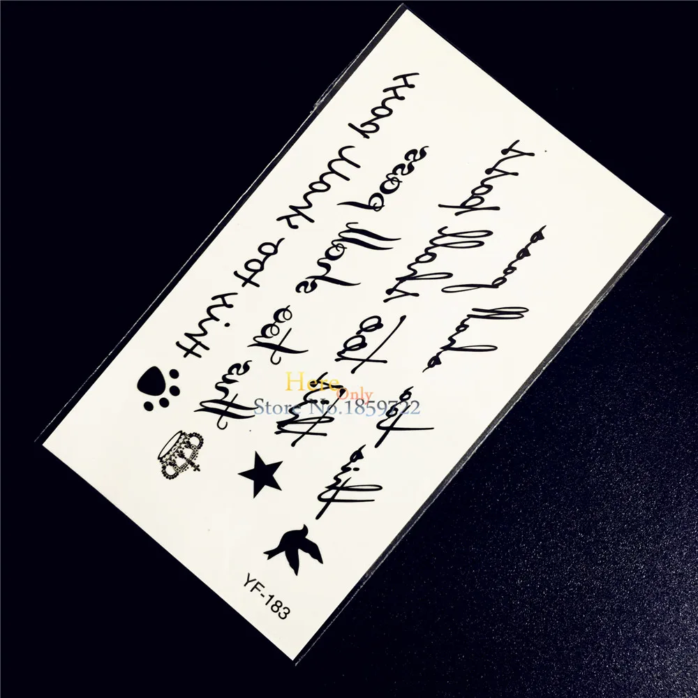 Cute Flash Fake Tattoo Black Words Bear Paw Birds Crown Star Pattern Chidren Kids Body Art Arm Tattoo Supplies Bracelet Stickers fake-body-tattoos