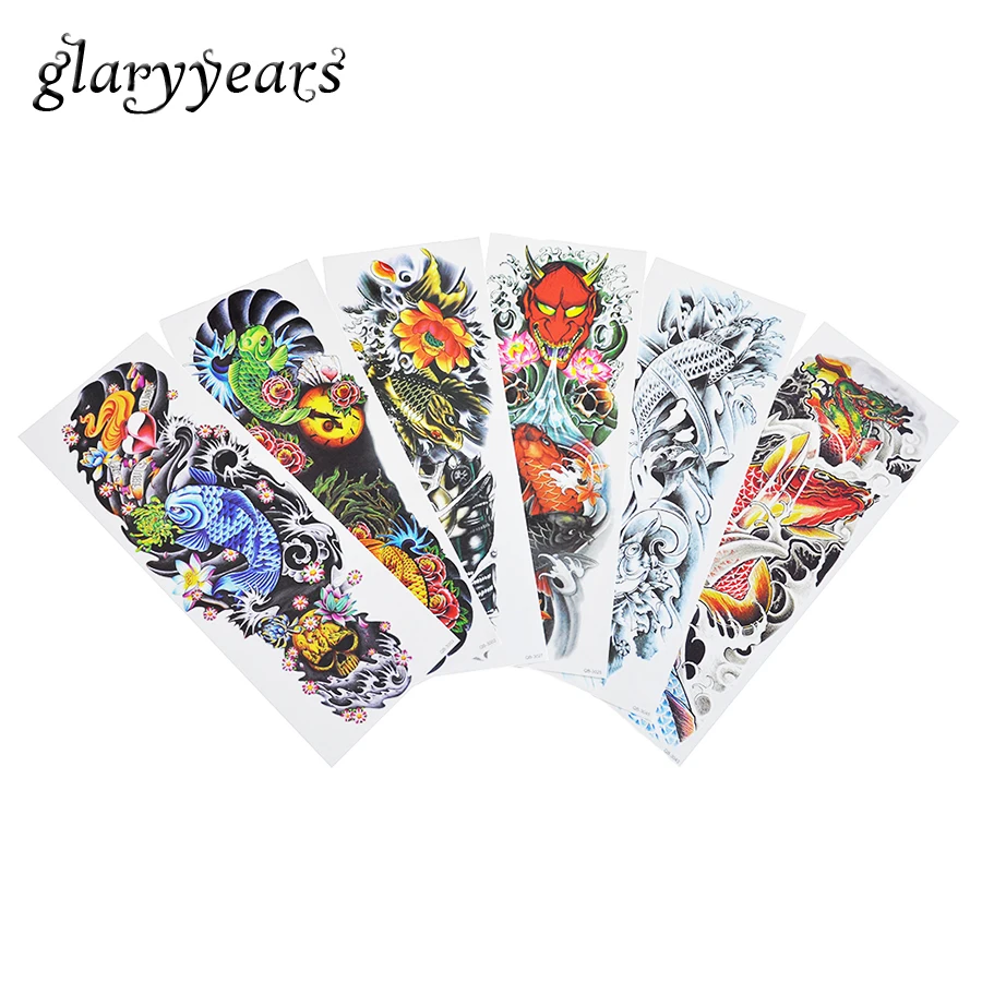 4.7 100 Video Reviews 6 Pieces Temporary Full Arm Leg Body Art Tattoo Sticker Fish Wave Devil Design Water Transfer Big Tattoo Sleeve Fake Decal QB#11 fake-body-tattoos