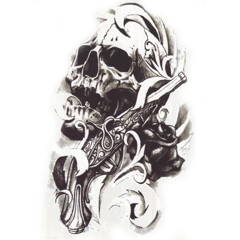 1PCS Sexy Tamporary Dangerous Black Fake Tattoo Sleeve Skull Tattoo On His Arm Temporary Tattoos Body Art Tatuajes Tatuagem fake-body-tattoos