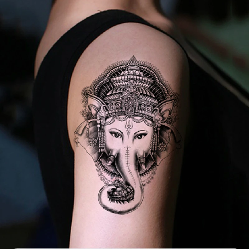 1pcsWaterproof Temporary Tattoo Sticker ElAephant Tattoo Ganesha Water Transfer Fake Ttattoo Paste Flash Tattoo Sticker For Body fake-body-tattoos