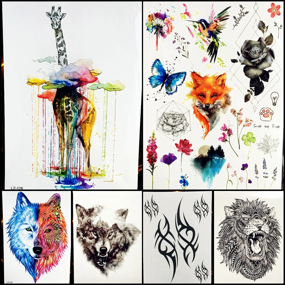 4.9 104 Video Reviews Water Color Cloud Rain Giraffe Temporary Tattoo Rainbow Watercolor Fake Flash Tattoo Cartoon Women Men Body Arm Stickers HLZ-126 fake-body-tattoos