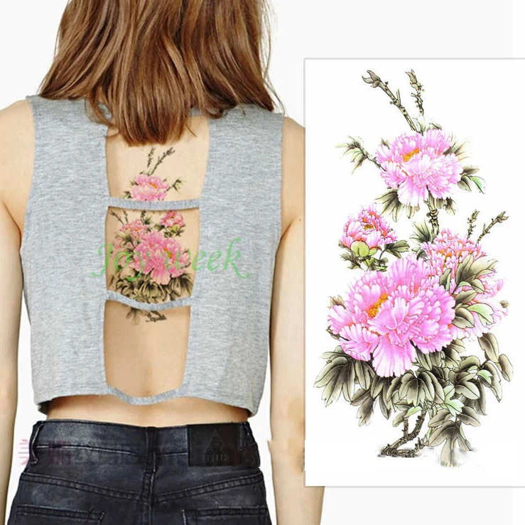 4.8 108 Video Reviews Waterproof Temporary Tattoo Sticker Chinese peony flower women's body art tatto stickers flash tatoo fake tattoos for girl fake-body-tattoos