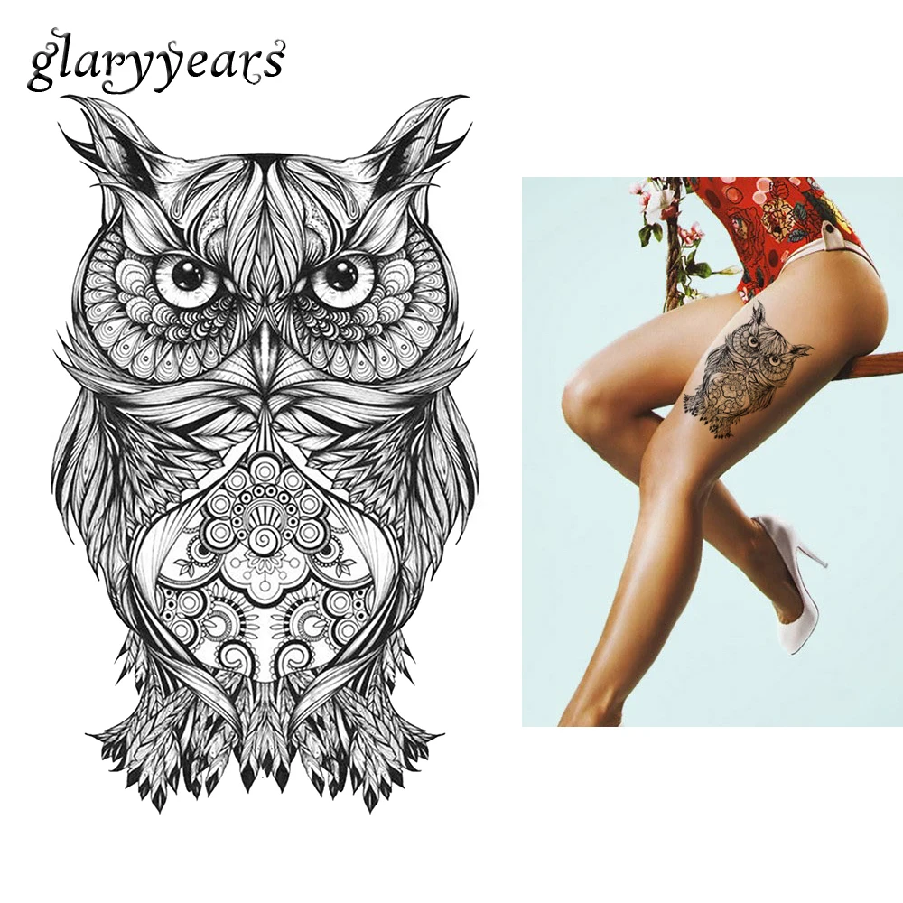 Check Price 1 Piece Temporary Body Art Tattoo Sticker KM-062 Fake Sketch Cartoon Owl Bird Decal Design Sexy Women Flower Arm Tattoo Products fake-body-tattoos Undisputed