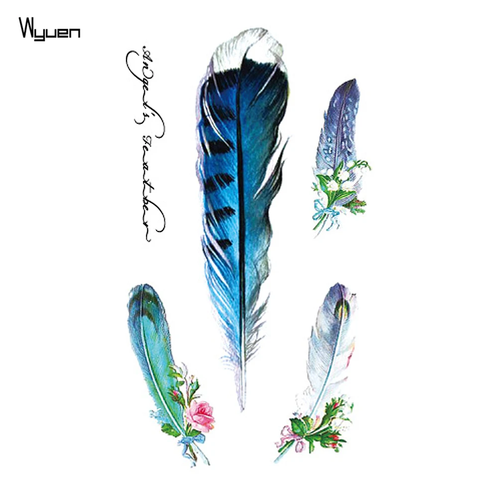 WYUEN Feather Waterproof Temporary Tattoos Sticker Women Men Fashion Fake Body Art 10.5X6cm Kids Hand Face Tattoo Paper B-065 fake-body-tattoos