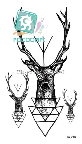 Check Price Rocooart HC-216 Body Art beauty Deer Head Men's Shoulder Finger Water Transfer Temporary Fast Flash Fake Tattoos Sticker Taty fake-body-tattoos Buying
