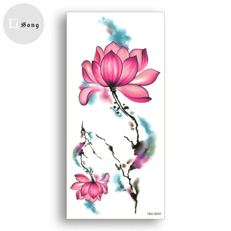 fake Tattoos lotus watercolor Women Body Art Flower arm Shoulder