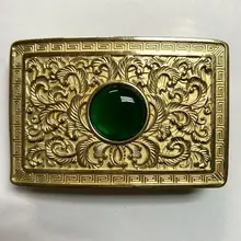 Cheap price Vintage Antique Pure Brass Copper Big Belt Buckle Flower with Jade Cowboy Mens Fashion Gift Belt Buckle Special Order Now! good quality