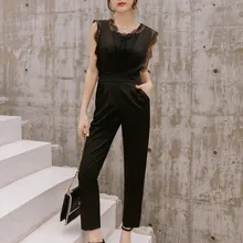 Cheap price 2019 Summer Lace Jumpsuit for Women Ankle-Length High Street Black/White Jumpsuits with Pocket Jumpsuits Special Order Now! good quality