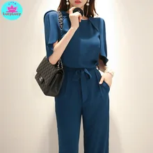 Cheap price 2019 summer new OL professional temperament fashion cape sleeves bandwidth loose trousers L green women's chiffon jumpsuit Jumpsuits Special Order Now! good quality