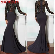 Latest price 2019 Elegant Mermaid Mother of the Bride Dresses High Neck Long Sleeve Black Lace Applique Black Beads Crystals Evening Gown Wedding Party Dress
